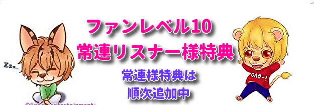 当配信ルームにて毎月、ファンレベル10(常連リスナー様」になっていただくと